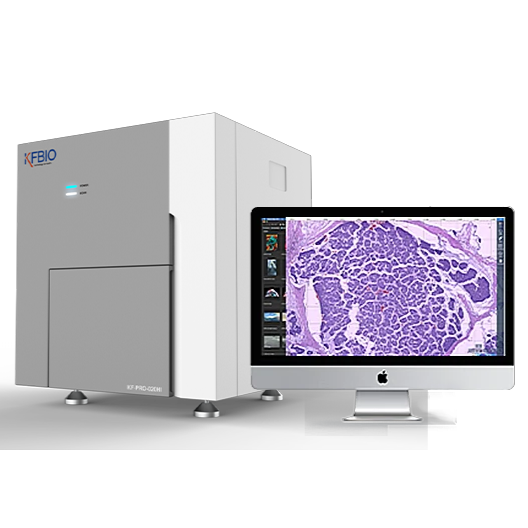 KFBIO Digital Pathology Slide Scanner (PRO) is a world leader in the accuracy of movement, focus, and image processing, and its accurate whole slide imaging not only meets the requirements of digital slide viewing and operation but is also suitable for AI-assisted image analysis.
